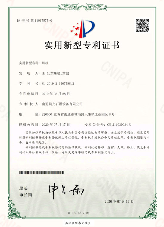 實用新型專利 :風(fēng)機 專利號:ZL 2019 2 1407788.2